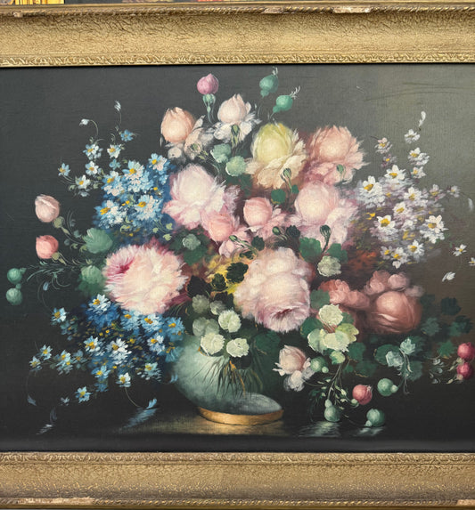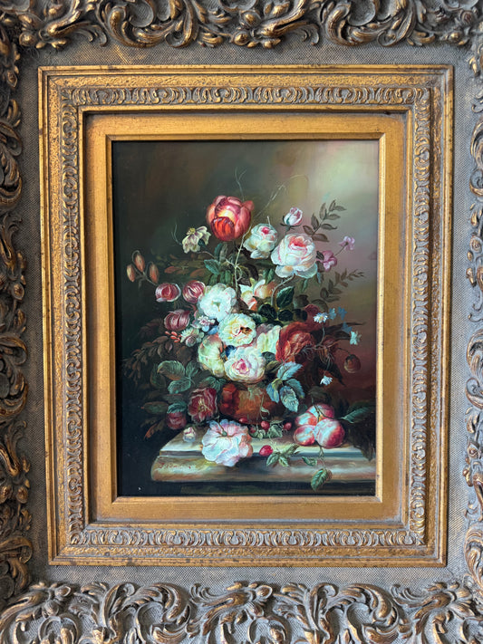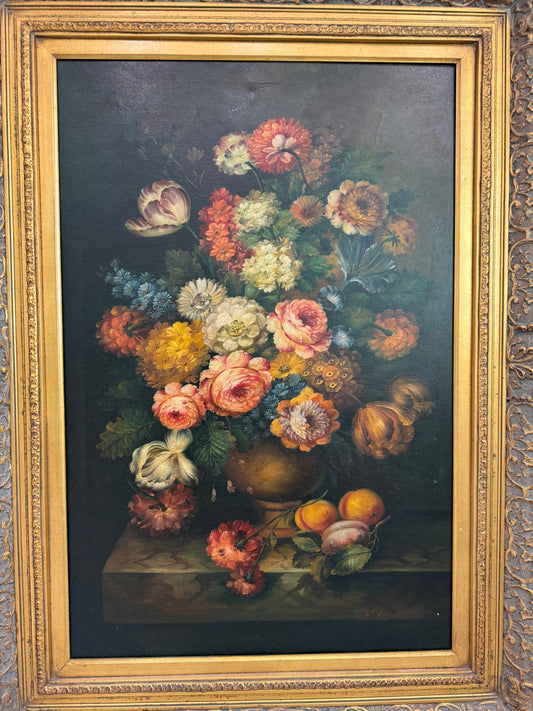 Vintage Still Life Floral Oil Painting in Ornate Baroque Frame