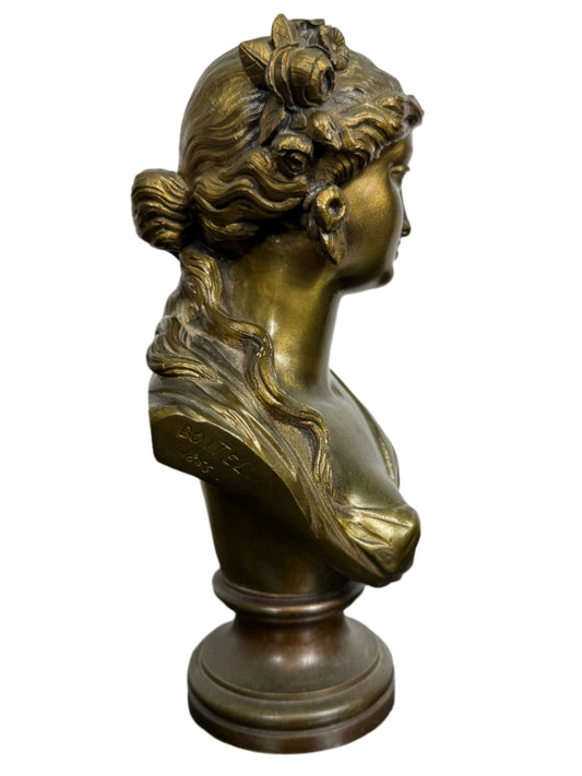 Antique Bronze Bust of a Woman by Isidore-Romain Boitel, 1855