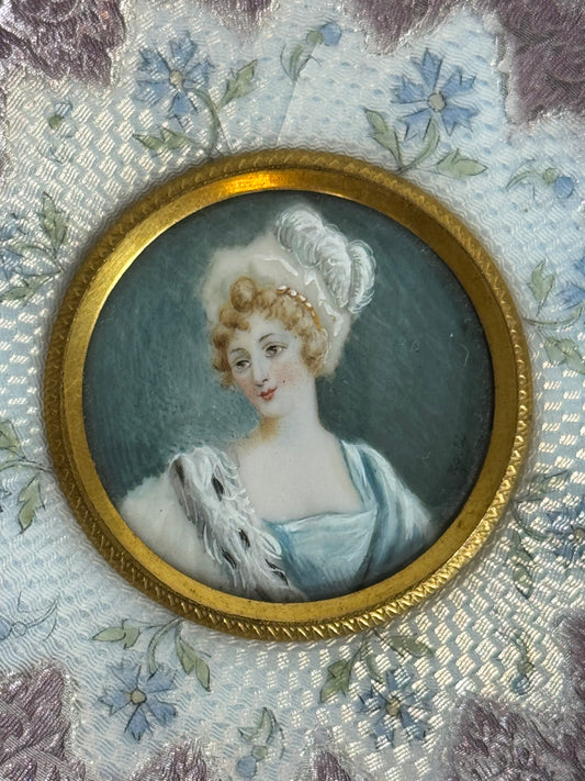 Antique Miniature Bronze Tazza with Signed Portrait Miniature and Guilloché Enamel