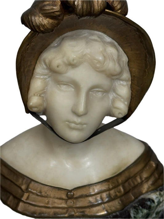 Antique Art Deco Carved Alabaster & Gilt Bust on Marble Base