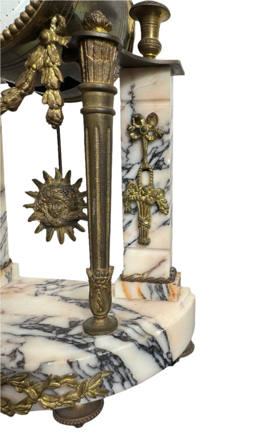 Antique French Marble and Bronze Portico Clock with Sunburst Pendulum