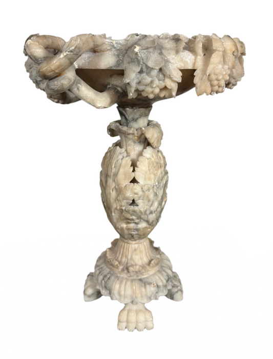 Antique Italian Carved Alabaster Tazza on Pedestal with Fruit Garlands & Paw Feet